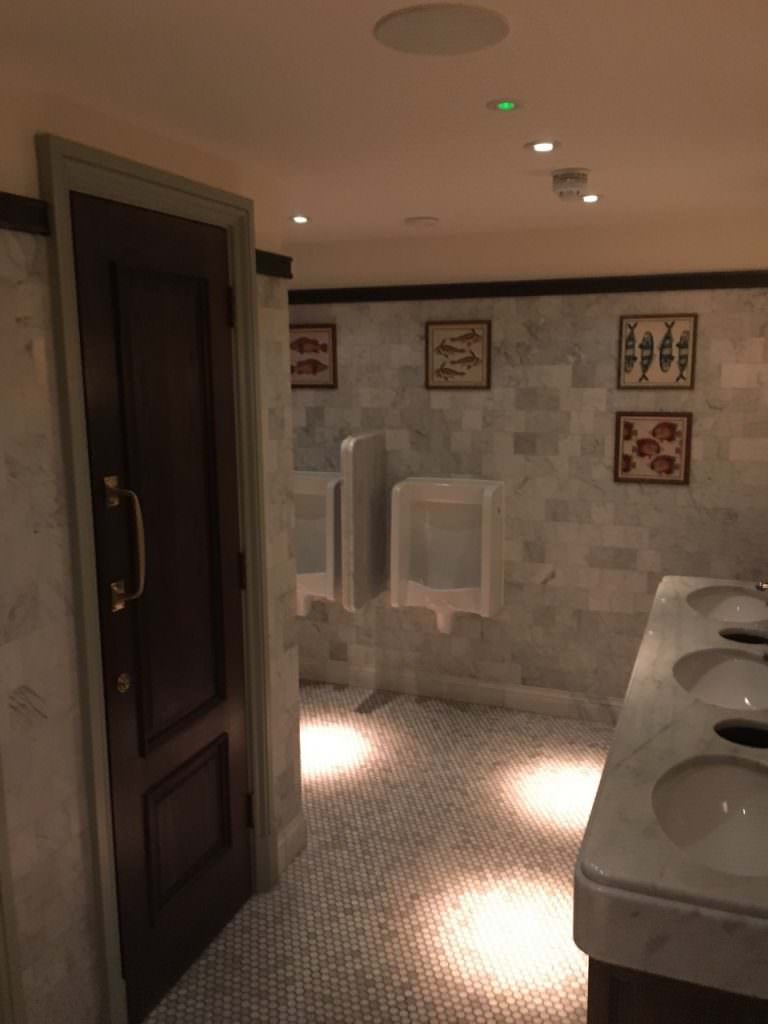 She begged me to report on relative conditions in the male version of The Ivy Washroom. Off I rushed in anticipation. I wasn’t going to take too long about it. I would have a couple of rounds of ‘Call of Duty’, and maybe play darts for a while in the imagined games room. Imagine then my disppointment when I got there and it was a washroom. Just a washroom. With washroom stuff. No vast expanse of mirrors for the men. No seats or flowery curtains. Just toilets and sinks. All very clean and perfectly satisfactory, but you could find similar chambers in a higher end fish and chips establishment.