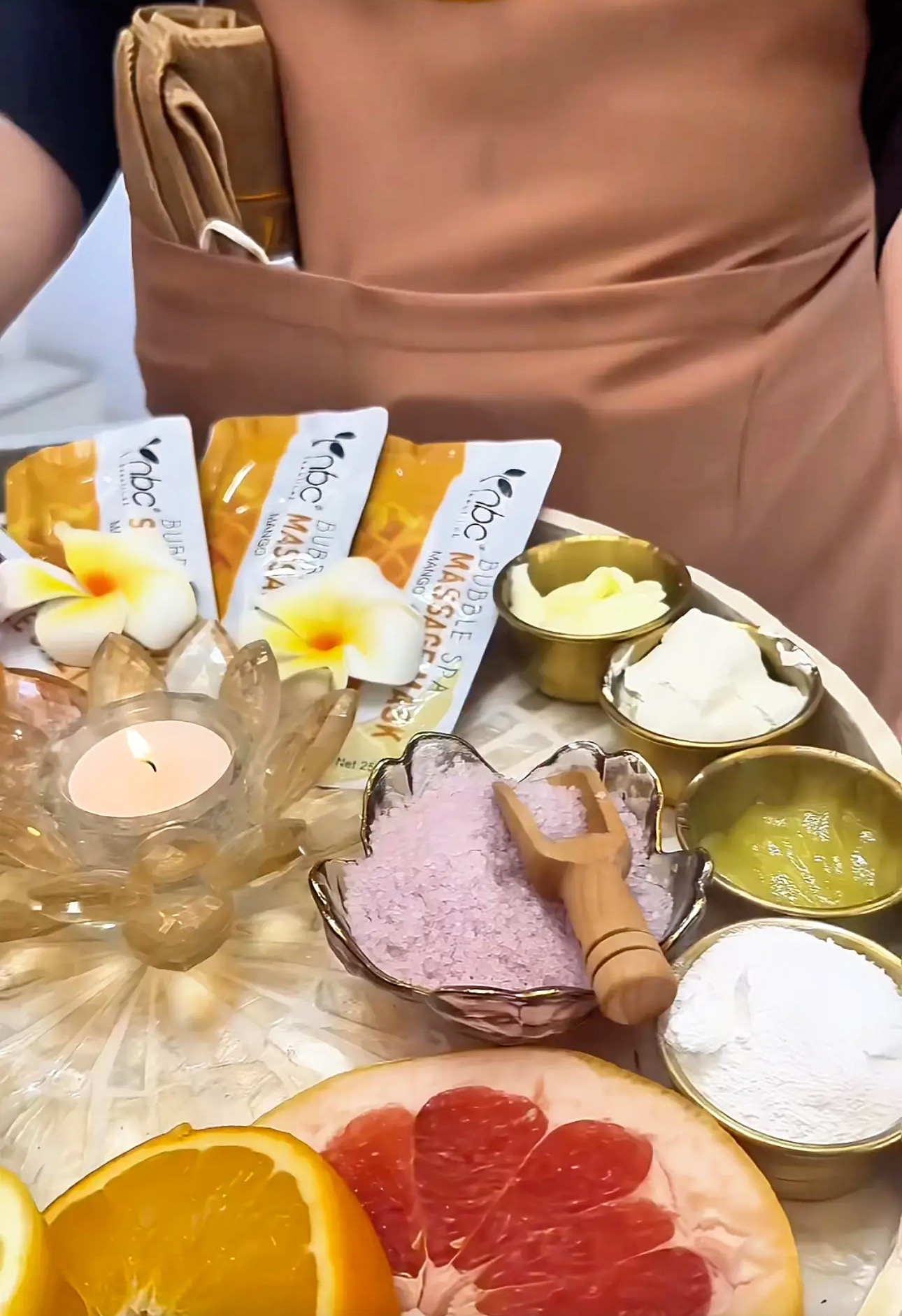 Before the treatment begins, a tray is laid out: oils, salts, citrus, botanicals and small dishes of cream. It signals care before a word is spoken. This is where a treatment stops being just a treatment.