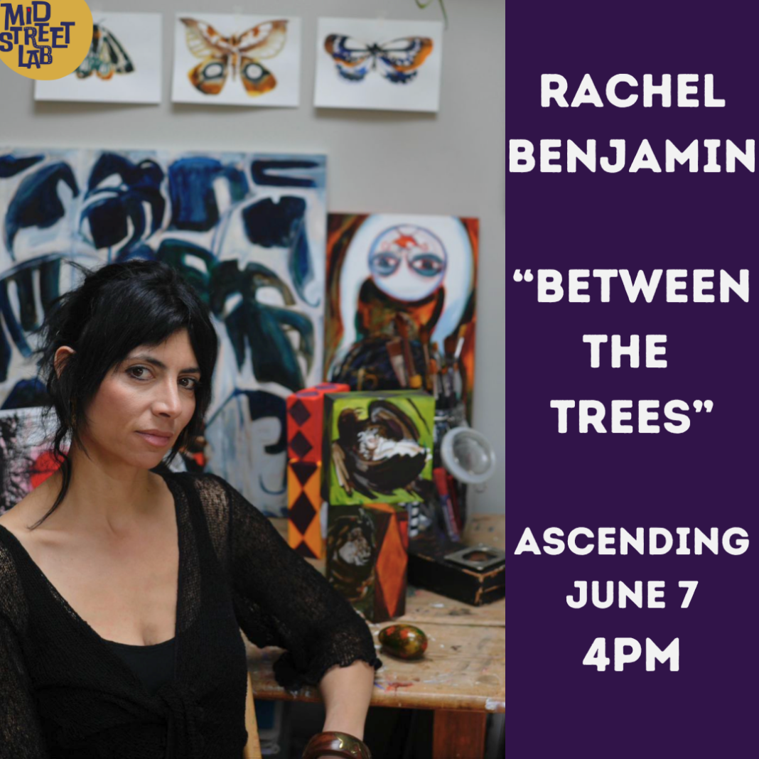 This summer, Mid Street Lab continues that momentum with Between the Trees, the debut solo exhibition of Rachel Benjamin. After more than 20 years teaching art, Benjamin returns to her own creative voice with a series that is both personal and hauntingly universal. Drawing on themes of memory, childhood, and transformation, her work stands as a quiet rebellion against years of creative silence. As she puts it, “I finally gave myself permission to take up space.”